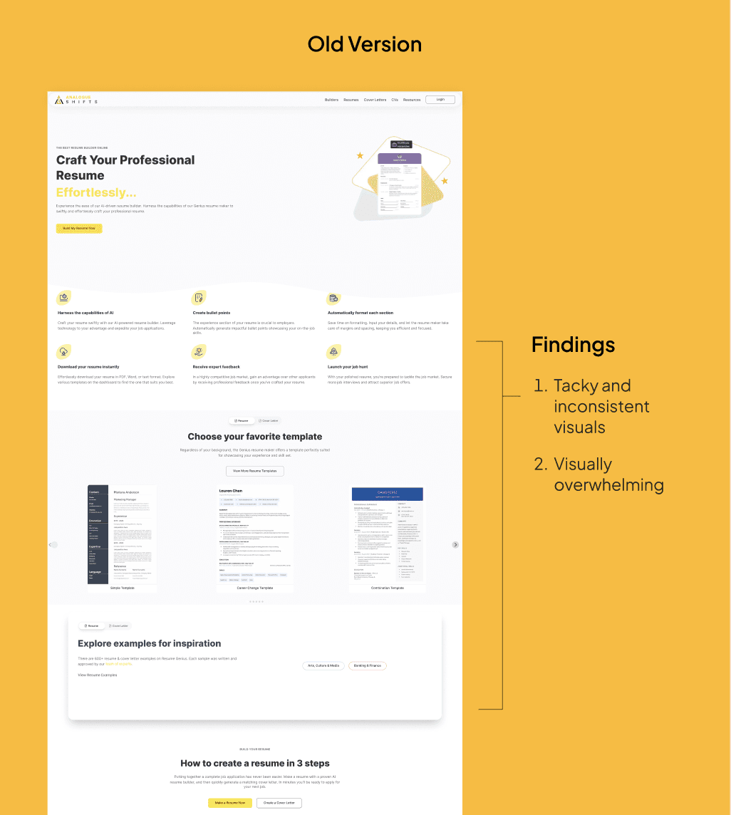 Users had to commit before really experiencing the product. From research and general user behavior, this was a big friction point. Resume builders are everywhere these days, and because there are so many options, users usually want to test a platform first before deciding to trust or pay for it.
