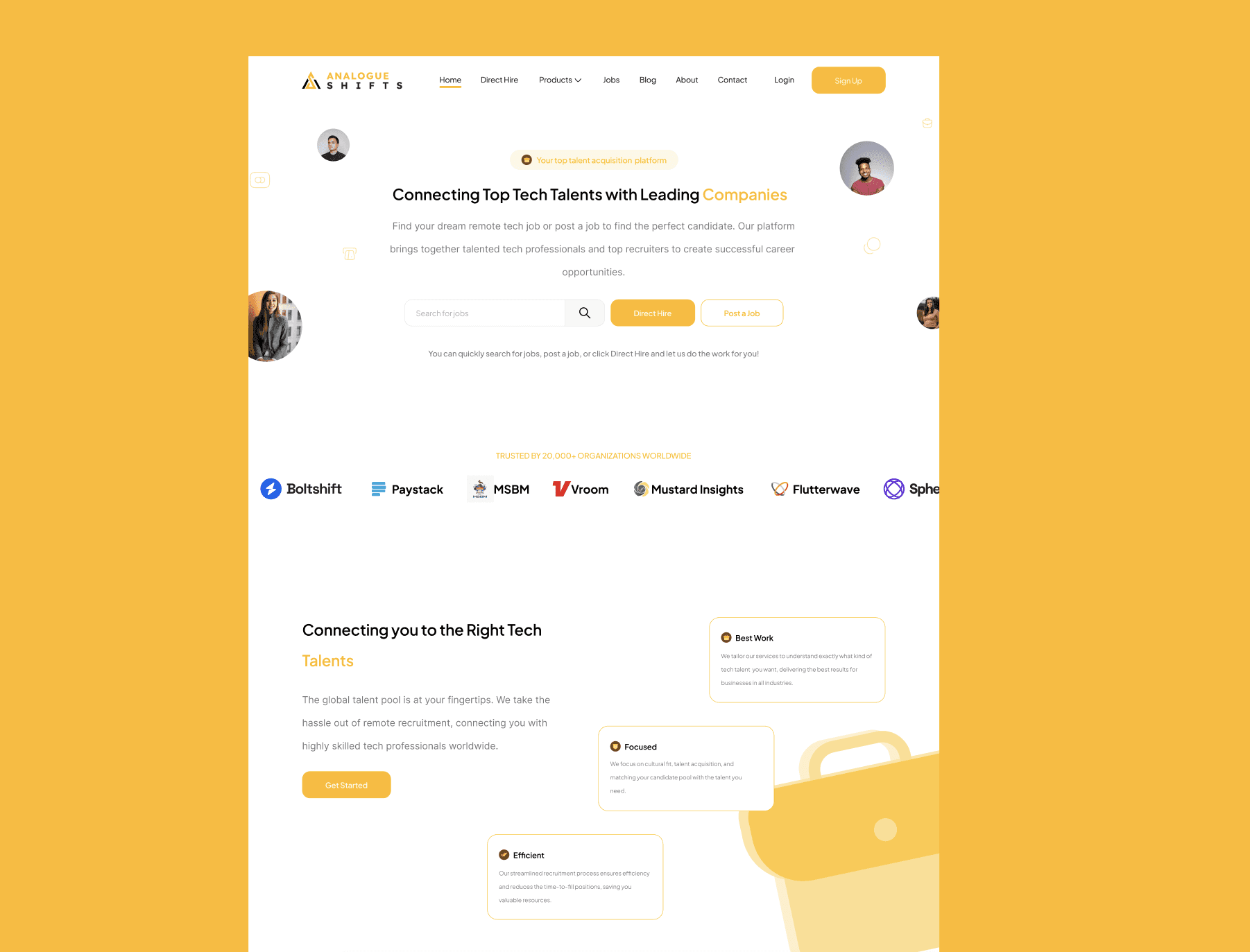 The landing page needed to explain the product better and offer more entry points (sign up, search jobs, explore)